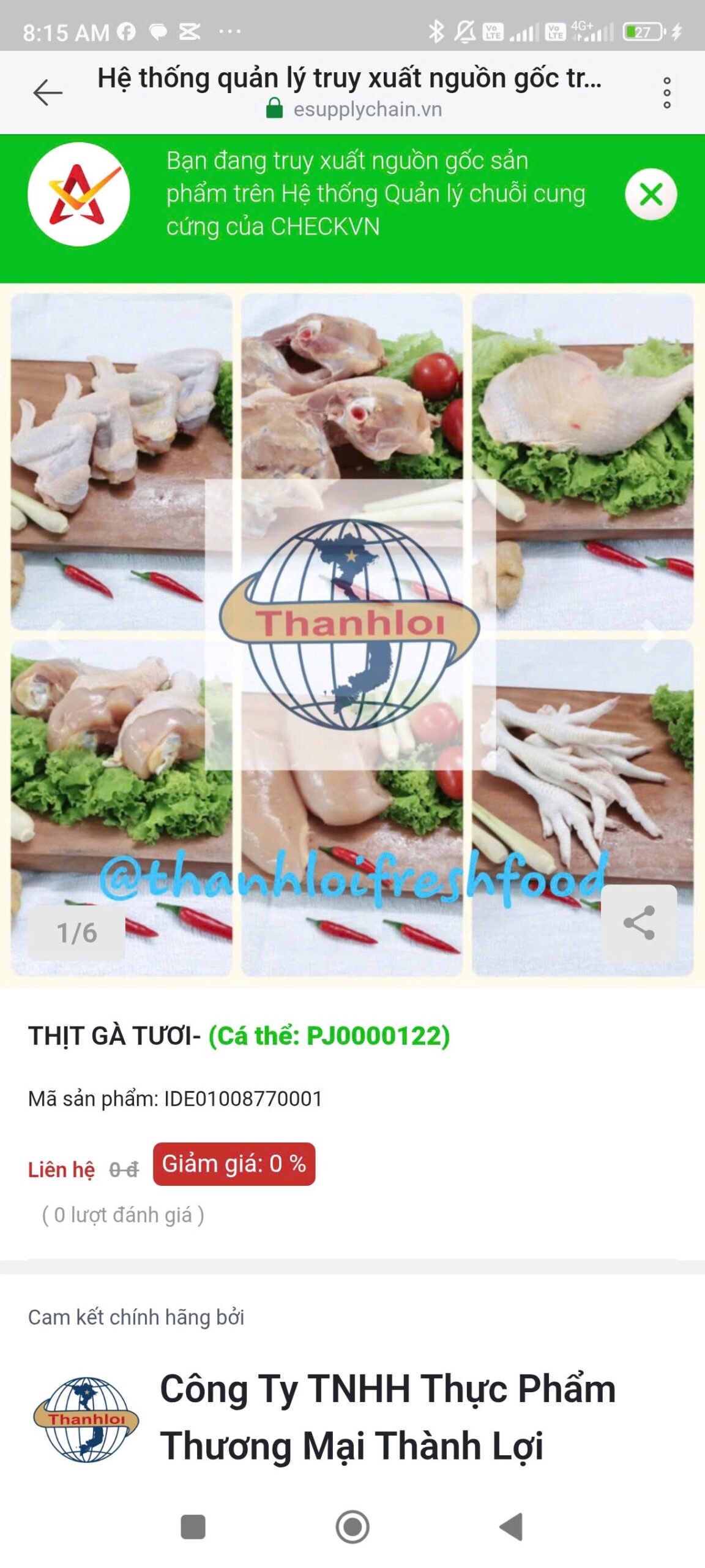 Dưới đây là một số hình ảnh trực quan khi áp dụng cho sản phẩm thịt gà của Công ty TNHH Thực phẩm Thương mại Thành Lợi.